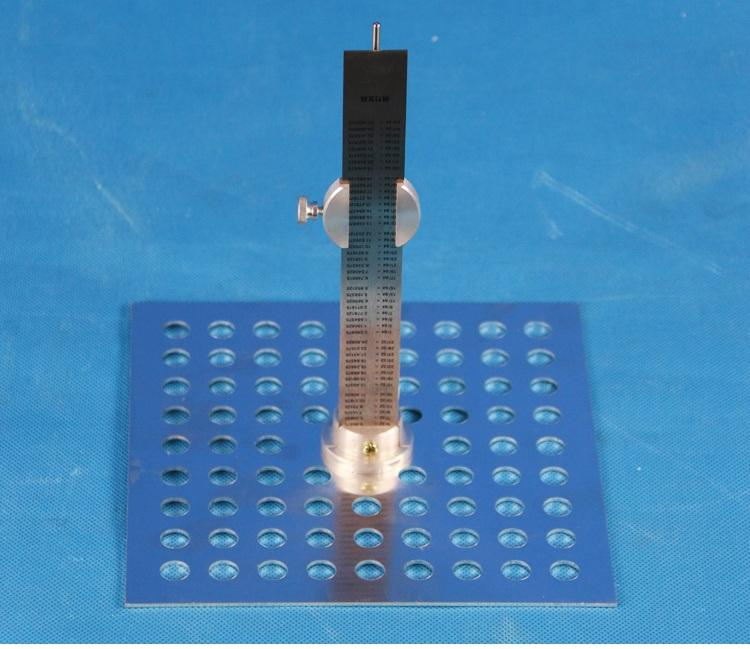 2、将仪器轻放在被测试样上,慢慢将测针插入被测试样中,直至底部,看刻度尺指针滑块平行处所指厚度,即为被测试样厚度。