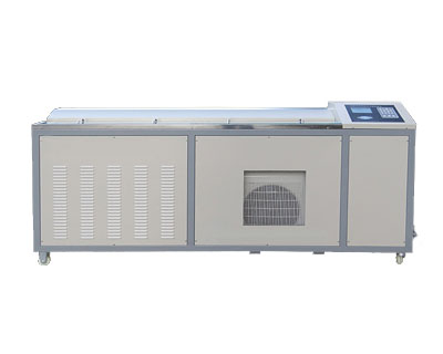 智能沥青延伸度测量仪计算机沥青低温延伸度测量仪由金属制造长方形水槽、底盘孔板、丝杠哈夫、滑板、支撑台、沥青模具(3个)、计算机数字长度、丝杠传动、加热器、温度计、电机、压缩机、制冷系统、变速等部件构成。