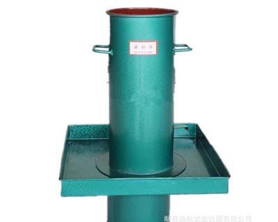 6、将基板放置在试验孔中,将砂筒放置在基板的中间,将砂筒放置在要求的品质上,将砂筒的下口对准基板的中孔和试验孔,打开砂筒的开关,将砂流入试验孔中,在此期间,请注意不要接触砂筒,直到砂筒不再下流为止