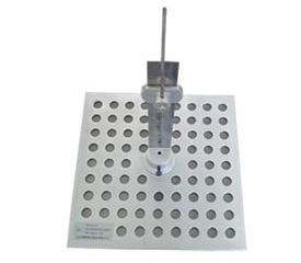 2、将仪器轻放在被测试样上,慢慢将测针插入被测试样中,直至底部,看刻度尺指针滑块平行处所指厚度,即为被测试样厚度。